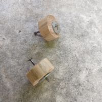 הכינו מסמר “מעוך” חוד והחדירו אותו במרכז הלוחית העגולה שניסרתם ממקל המטאטא עבור הגלגלים.
