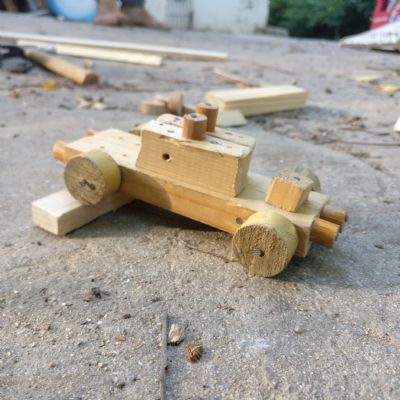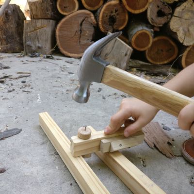 מה שהתחיל כמשחק בלהכניס ולהוציא מסמרים מתוך חתיכות עץ, הפך בהדרגה לבניית צעצועים ומכוניות, מדפים, שולחנות קטנים, שרפרפים ולאחרונה אף כלוב לחיות המחמד שלו.