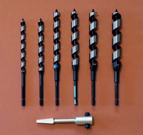 סט מלא של מקדחת ארכובה brace drill 6 מקדחי אוגר auger איכותיים לעץ (10/12/14/16/18/20 מ"מ) מתאם קוני בין מקדחות ארכובה למקדחים מודרניים בעלי כניסה משושית כמו של מברגה